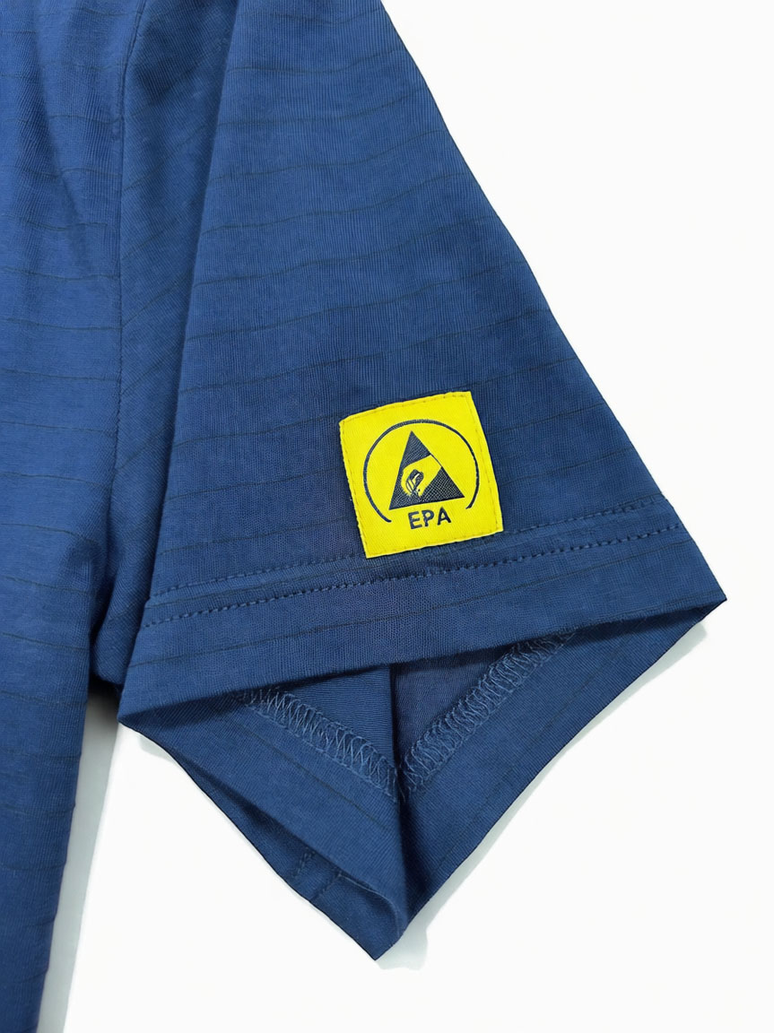ESD T-shirts for static control in a cotton fabric.